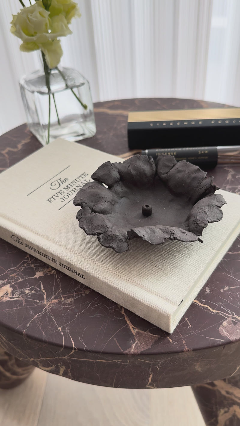 Handcrafted from rich, raw chocolate-toned clay, this incense holder brings a quiet, grounded energy to your space. Its organic form and softly textured surface feel as if it was shaped by hand, over time, echoing the natural rhythm of the earth. The deep, earthy hue and subtle variations in tone make each piece completely unique, inviting a moment of calm every time you light your incense.